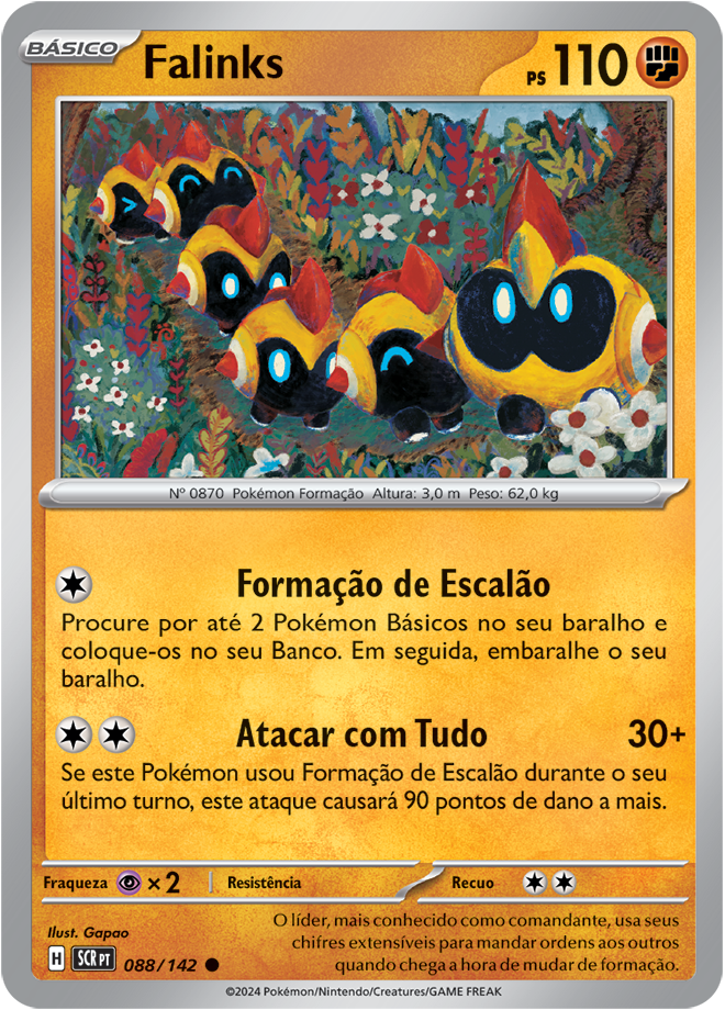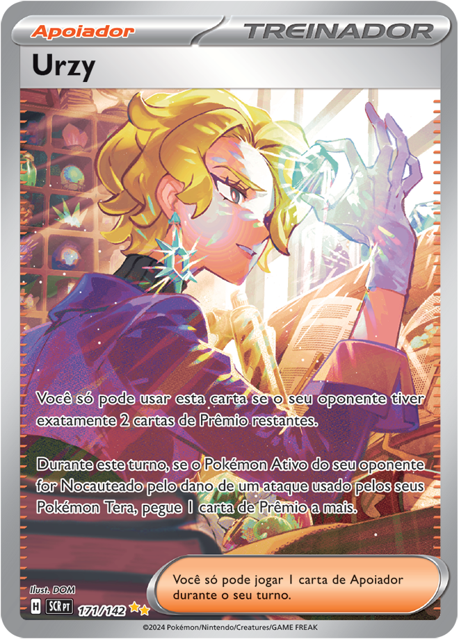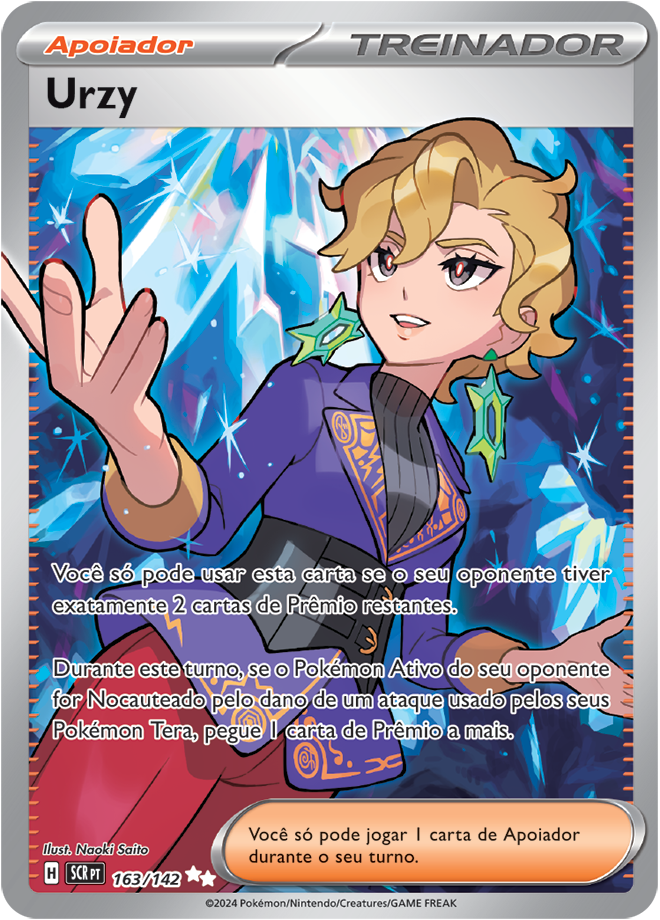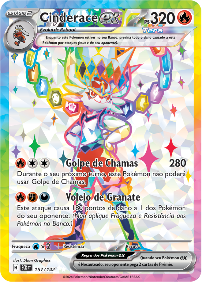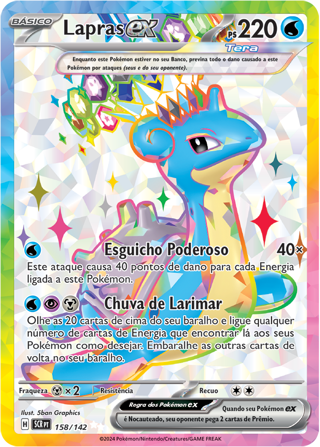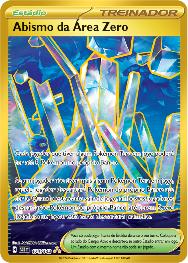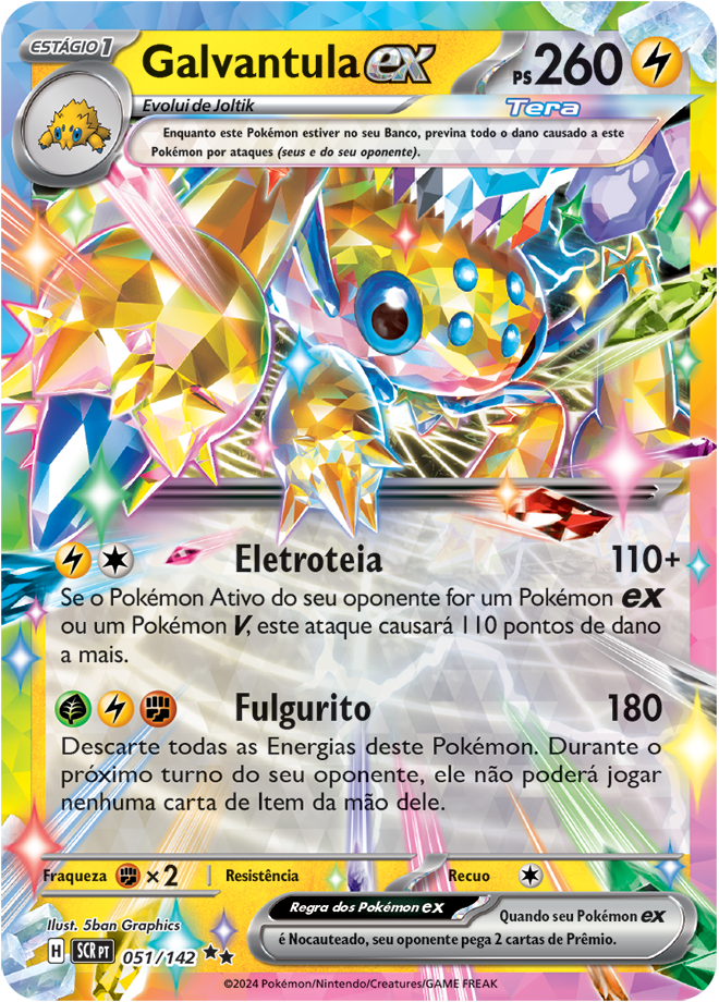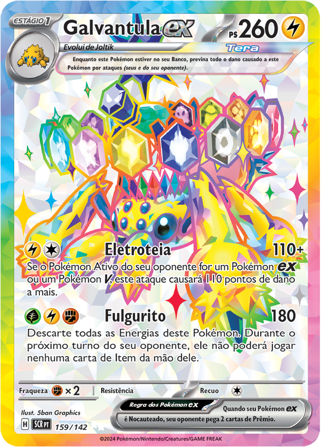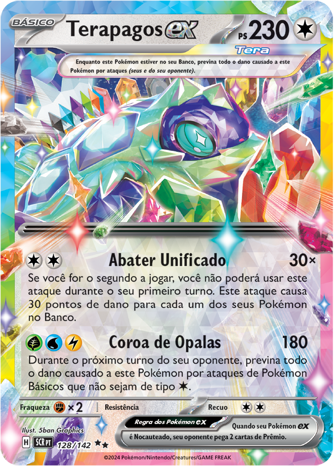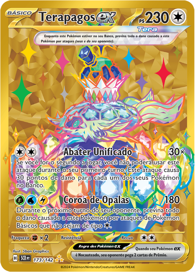 Coroa Estelar (EV7, SV7 ou Stellar Crown em inglês) é uma coleção de Pokémon TCG (Estampas Ilustradas), e traz como destaque o Pokémon Terapagos. Entre as 175 cartas, ela traz 3 cartas ACE SPECS, 10 Pokémon ex e 4 Pokémon ex Tera Estelares, 13 cartas com ilustração rara, 6 cartas com ilustração Rara Especial de Pokémon e Apoiador; e 3 cartas Rara Hiper douradas com textura especial. Confira abaixo todas elas: