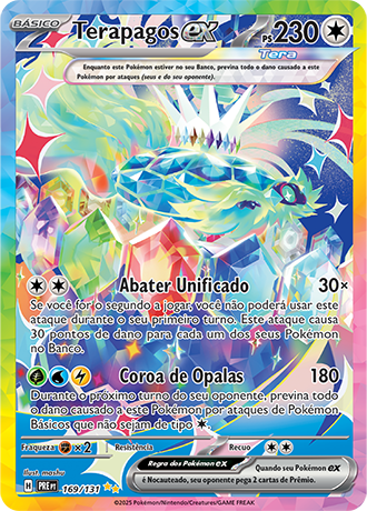 Em relação às cartas, essa coleção contém 6 cartas Pokémon ACE SPEC, 10 Pokémon ex e 15 Pokémon ex Tera, 12 cartas de Apoiador Rara Ultra, 32 cartas de Pokémon ex e de Apoiador Ilustração Rara Especial, 5 cartas de Pokémon ex Rara Hiper douradas com textura especial. Já em relação aos produtos disponíveis, é composta por: Boosters, Coleção Treinador Avançado, Blisters Triplos e Quádruplos, Combo de pacotes de booster (18 pacotes) e Caixa Surpresa (8 pacotes e 1 caixa estilosa para guardar tudo).