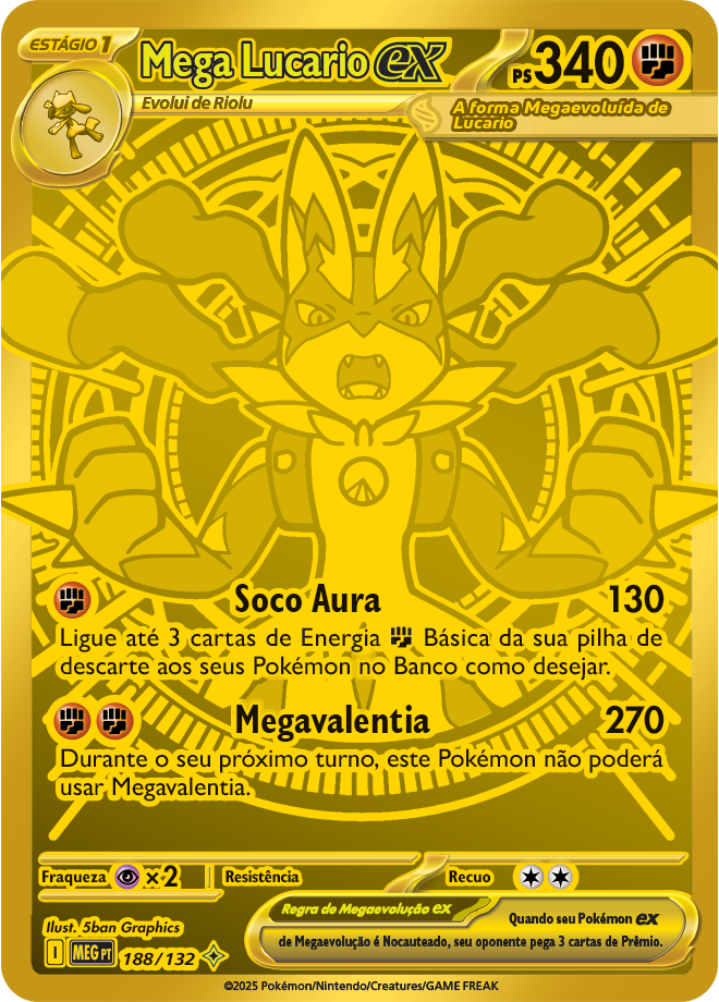 Megaevolução (ME1, ou Mega Evoltuion) é a 1º coleção regular do Pokémon TCG (Estampas Ilustradas) do bloco Megaevolução, ela foi lançada no dia 26 de setembro de 2025 nas lojas brasileiras, mas teve a sua estreia antecipada no Pokémon TCG Live no dia 25 de setembro de 2025. Ela possui um total de 188 cartas, sendo 10 Pokémon ex de Megaevolução, 22 cartas Ilustração Rara de Pokémon, 22 cartas Rara Ultra de Pokémon ex de Megaevolução e de Treinador e 10 cartas Ilustração Rara Especial de Pokémon ex de Megaevolução e de Apoiador. Confira abaixo todas as cartas dessa coleção: