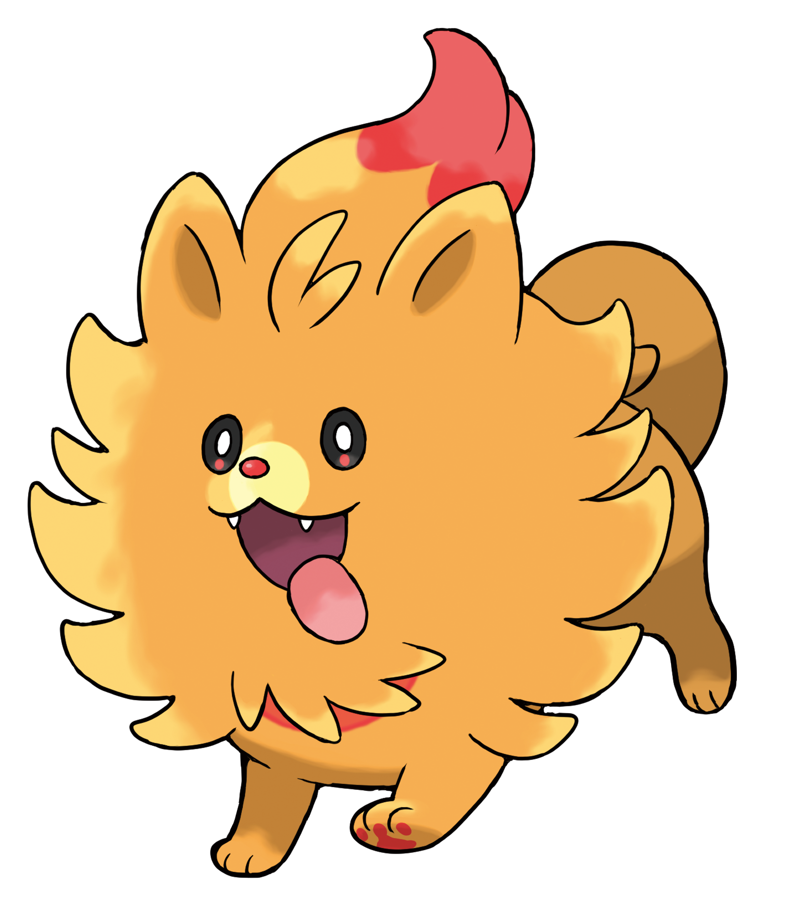 A parte debaixo do seu pescoço brilha levemente devido ao órgão que gera calor dentro de seus pulmões. Este Pokémon é inocente e amigável.